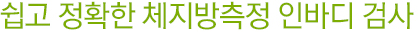 - BMI수치와 체지방률로 검사자의 체형을 진단 - 각 부위별 부분체지방을 측정 - 일일소모 칼로리를 계산하여 다이어트에 필요한 정보 제공 |