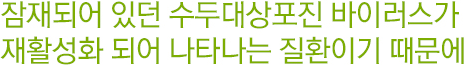 통증과 삶의 질 저하를 일으킬 수 있는 대상포진 수두에 감염될 위험이 높은 어린 영·유아에게는 수두를 일으킬 수 있습니다.